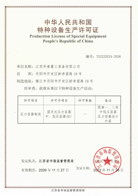 A2級(jí)壓力容器生產(chǎn)許可證